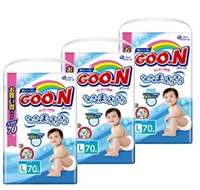 大王 GOO.N 纸尿裤L(9-14kg)210片(70片X3包)日亚自营4620日元页面有1000日元OFF优惠券 合3620日元(约220元)>>>页面直达