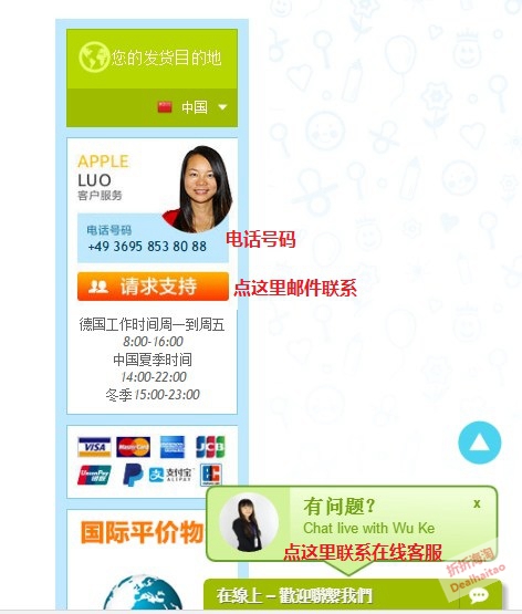打开客服联系方式页面,如果碰到在线客服在,可以直接右下角选择在线客服。如果在线客服不在,点击”请求支持(邮件联系)",可以全程用中文联系。由于时差问题,邮件回复不一定有那么及时,比较紧急的请款,建议联系找准好客服在线时间,在线联系,或者直接拨打客服电话+49 (0) 3695 / 853800